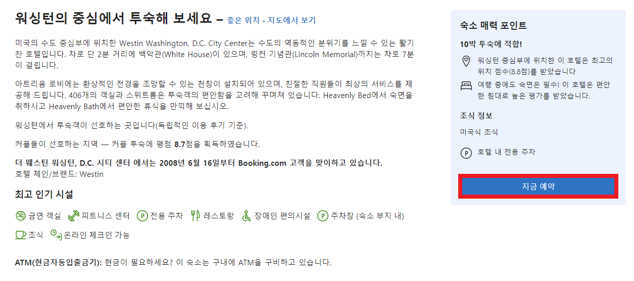 필자는 다음과 같이 "더 웨스틴 워싱턴, D.C. 시티 센터 (The Westin Washington, D.C. City Center)"라는 숙소를 찾을 수 있었다.