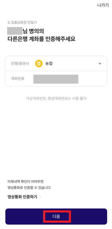 2) 가지고 있는 다른 계좌를 이용한 본인 인증