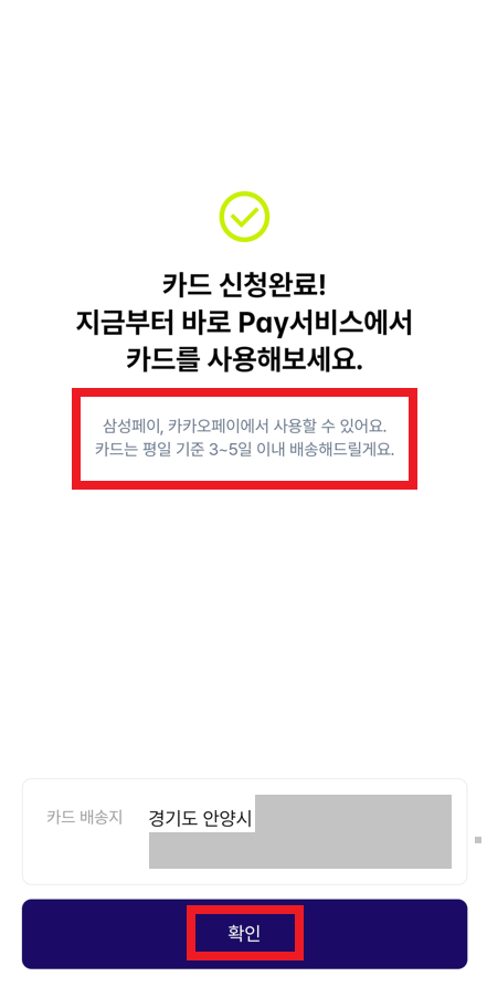 이후에 시간이 지난 뒤에 카드 실물까지 우편을 통해 발급 받을 수 있었다.