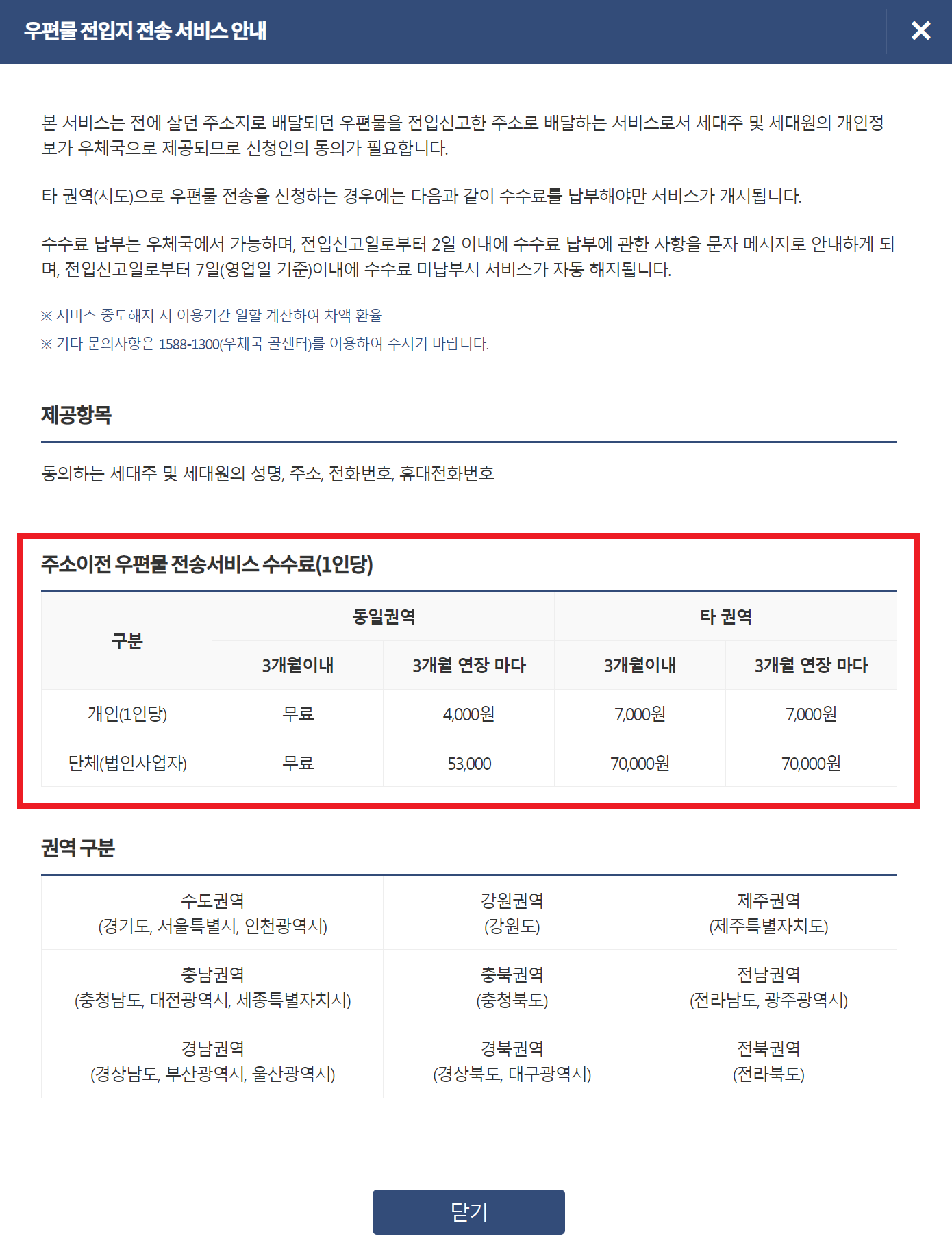 참고로 "우편물 전입지 전송 서비스 안내" 문구도 다음과 같은 내용으로 확인할 수 있다.