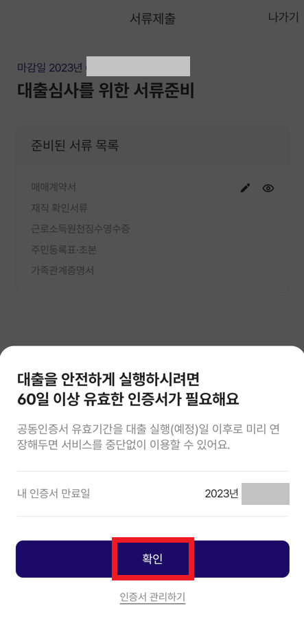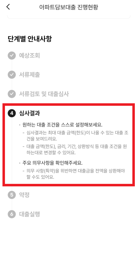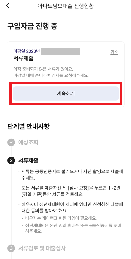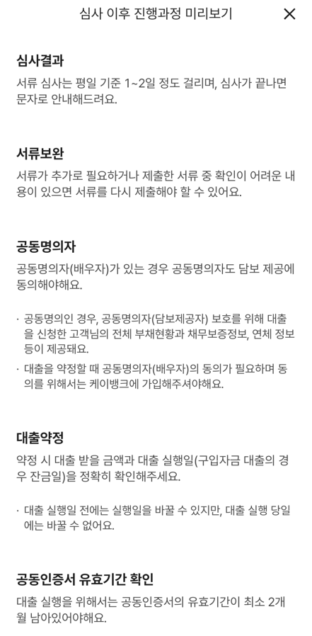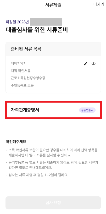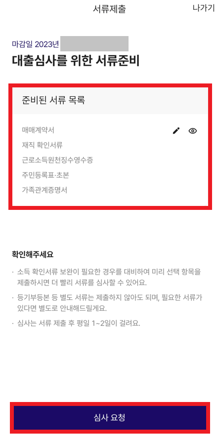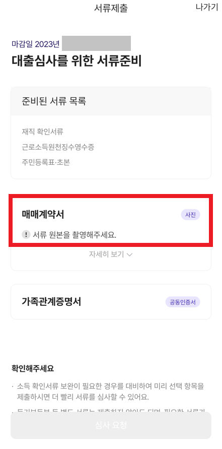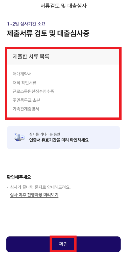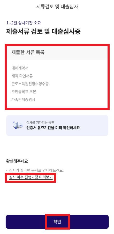 이제 결과적으로 "대출 신청" 진행 상태가 되기 때문에, 구체적인 증빙 서류를 준비하면 된다.
