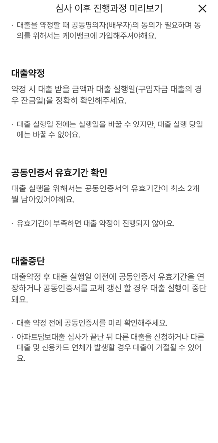 더불어 일반적으로 "모바일 과정"으로 대출을 받는 것이 아니라면, 대체적으로 서류를 직접 상담원을 통해 혹은 은행 창구를 통해 제출하기 때문에, 공인인증서가 사용되지 않을 수 있다. 하지만 케이뱅크는 전 과정 모바일 대출 방식이므로, 공인인증서(공동인증서)가 사용되는 것으로 보인다.