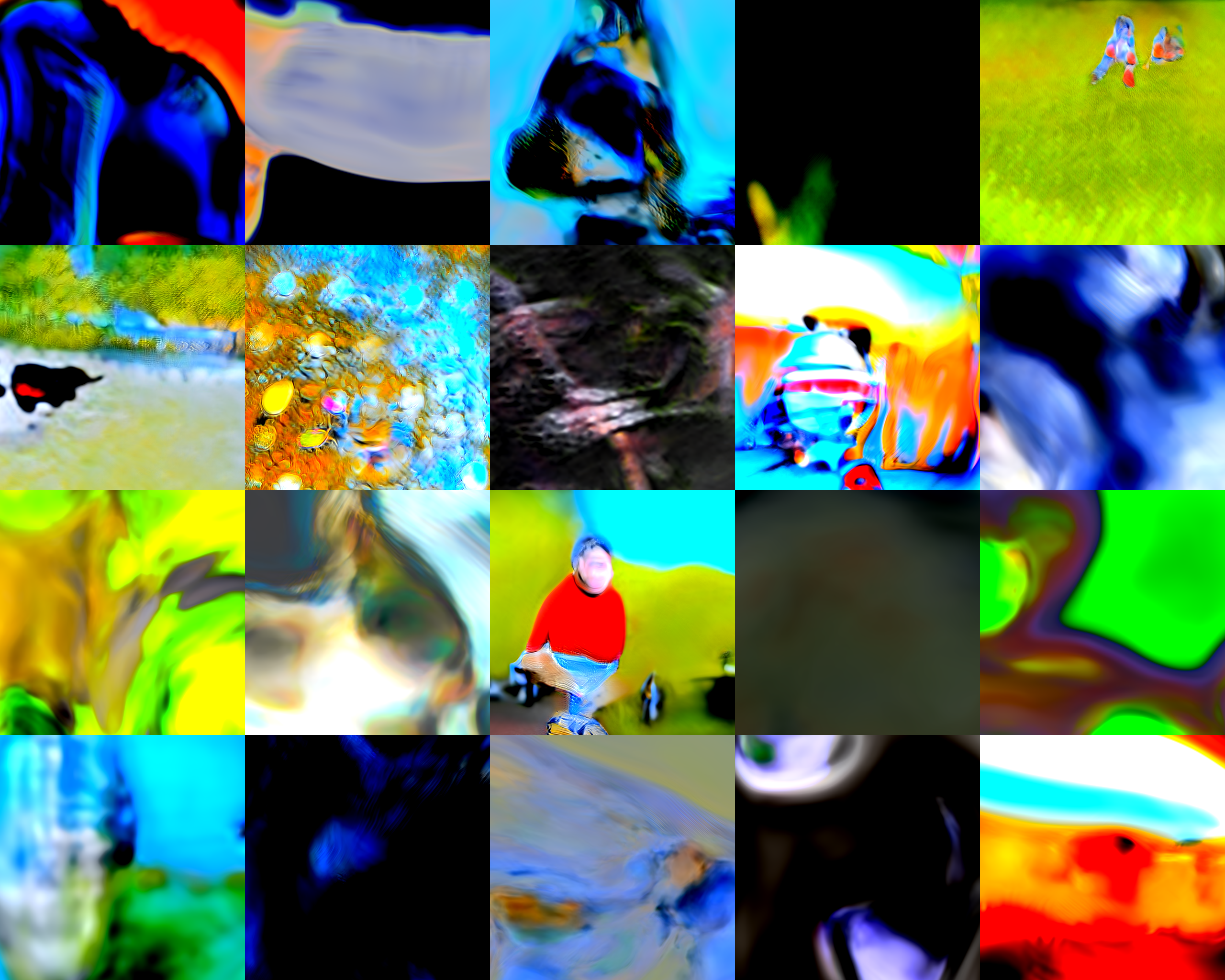 이후에 다음과 같이 각 클래스마다 20개의 이미지를 생성할 수 있다. 단, 각 이미지에 대하여 해당 이미지의 클래스에 대한 평균적인 정보를 제거하는 방식을 선택했다.