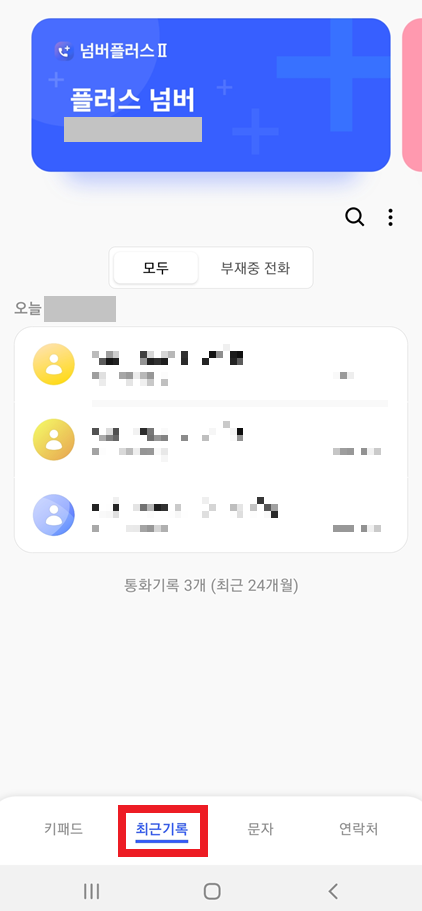 이후에 플레이스토어에서 [넘버플러스II]를 설치하고, 본인 인증을 완료하면 [최근기록] 탭에 접속했을 때 다음과 같은 화면을 확인할 수 있다.