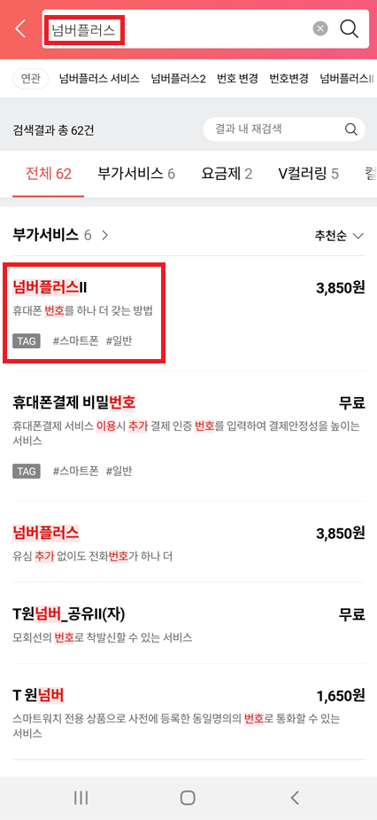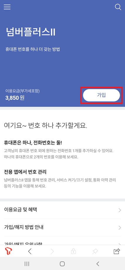 이후에 [넘버플러스II]를 검색한 뒤에 [가입]을 진행한다.