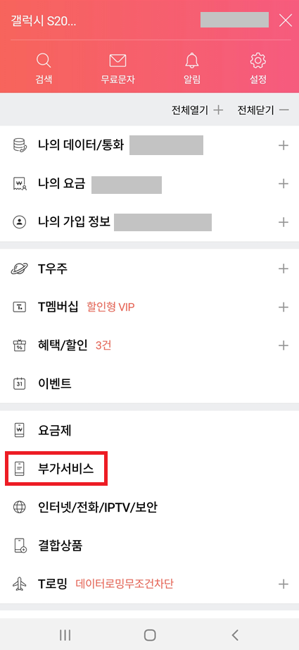 그렇다면 투넘버 서비스는 어떻게 신청할 수 있을까? SKT 통신사를 사용 중이라면, 넘버플러스II를 사용할 수 있다. 매우 저렴한 한 달 요금(월 요금)으로 투폰 서비스를 사용할 수 있는 것이다. [모바일 T-World] - [메뉴] - [부가서비스]에 들어간다.