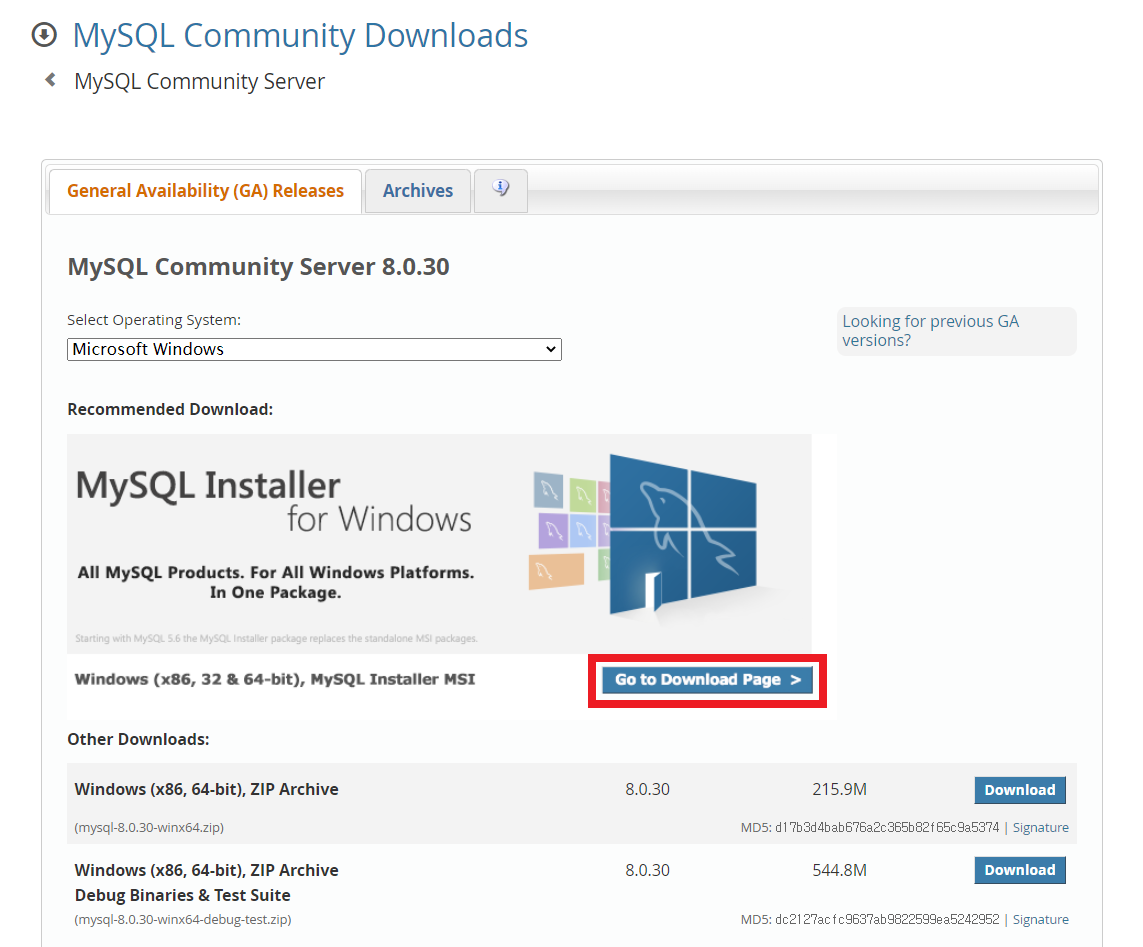 ▶ MySQL 커뮤니티(Community) 서버 다운로드 경로: https://dev.mysql.com/downloads/mysql/