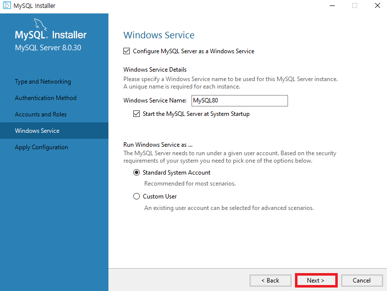 또한 MySQL의 경우 윈도우(Windows) 서비스로 설정하게 되면, 컴퓨터가 실행되면 자동으로 MySQL 서버도 동작하게 된다.