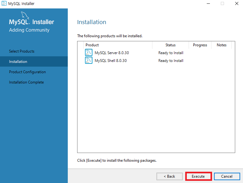 다음과 같이 [Execute] 버튼을 눌러 본격적으로 설치를 진행할 수 있다.