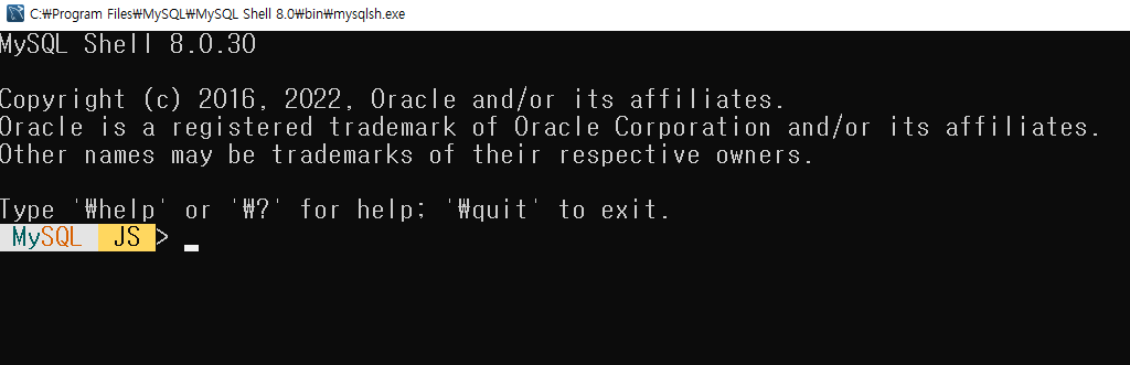 다음과 같이 MySQL Shell이 정상적으로 실행된 것을 확인할 수 있다.