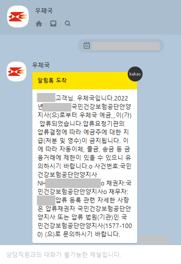 반면에 지역가입자(프리랜서 등)는 자신이 직접 납부를 해야 되기 때문에, 까먹고 못 낼 수도 있다. 필자의 경우에는 집이 있지만, 집에 잘 안 들어가서 우편이 쌓여있곤 한다. 그래서 안내 우편(독촉장)을 늦게 확인했다. 독촉장을 받은 뒤에, 곧 내야지 하는 사이에 [압류]를 당했다. (구체적으로 예금 및 채권이 압류되었다.)