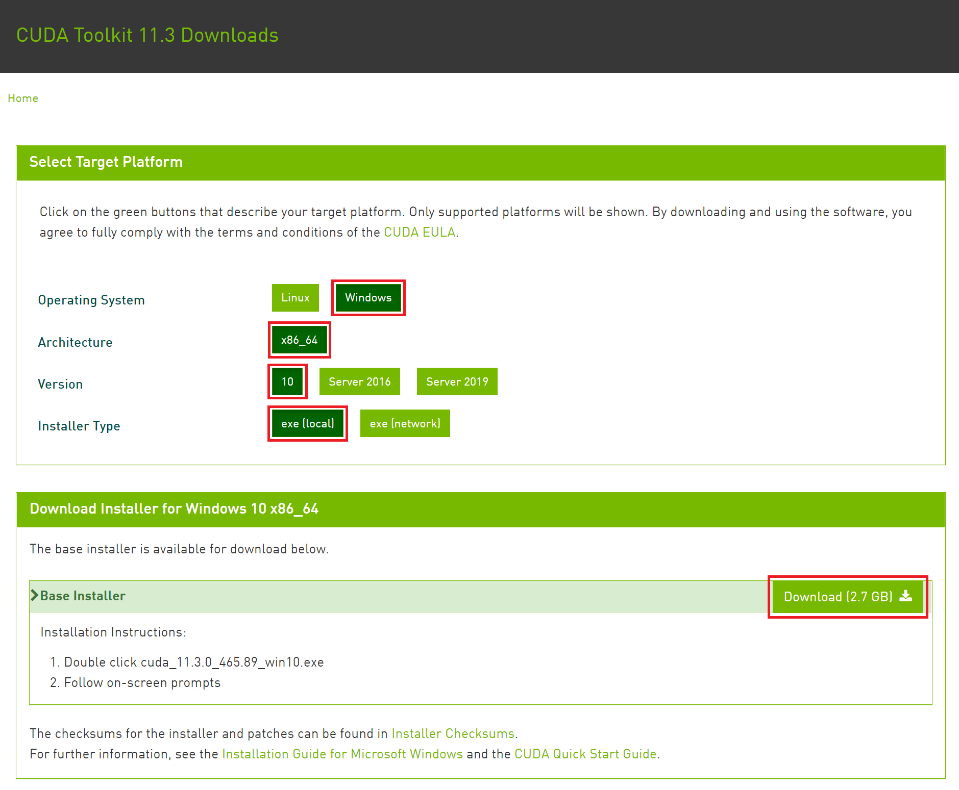 필자는 다음과 같이 CUDA Toolkit 11.3.0을 선택했다.