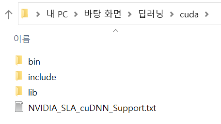 다운로드 이후에 압축을 풀면 다음과 같이 bin, include, lib 폴더가 보인다.