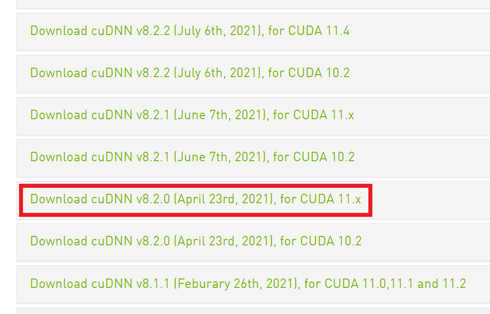 이후에 cuDNN을 설치한다. 필자는 CUDA Toolkit 11.3을 설치했기 때문에, 이에 호환되는 cuDNN을 설치하면 된다.