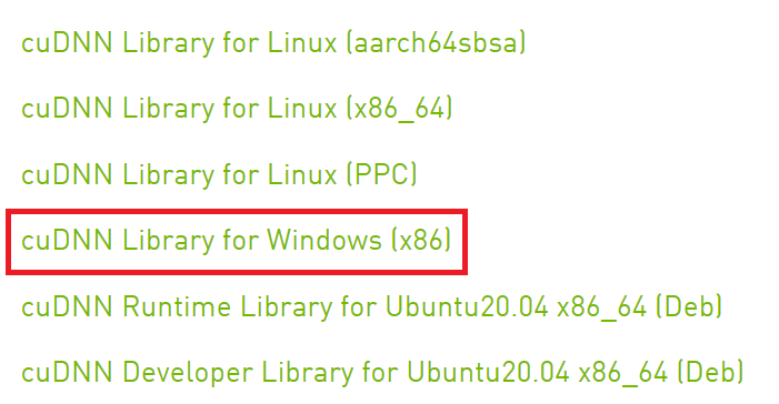 다음과 같이 윈도우(Windows) 운영체제에 맞는 cuDNN 라이브러리를 선택하여 다운로드한다.