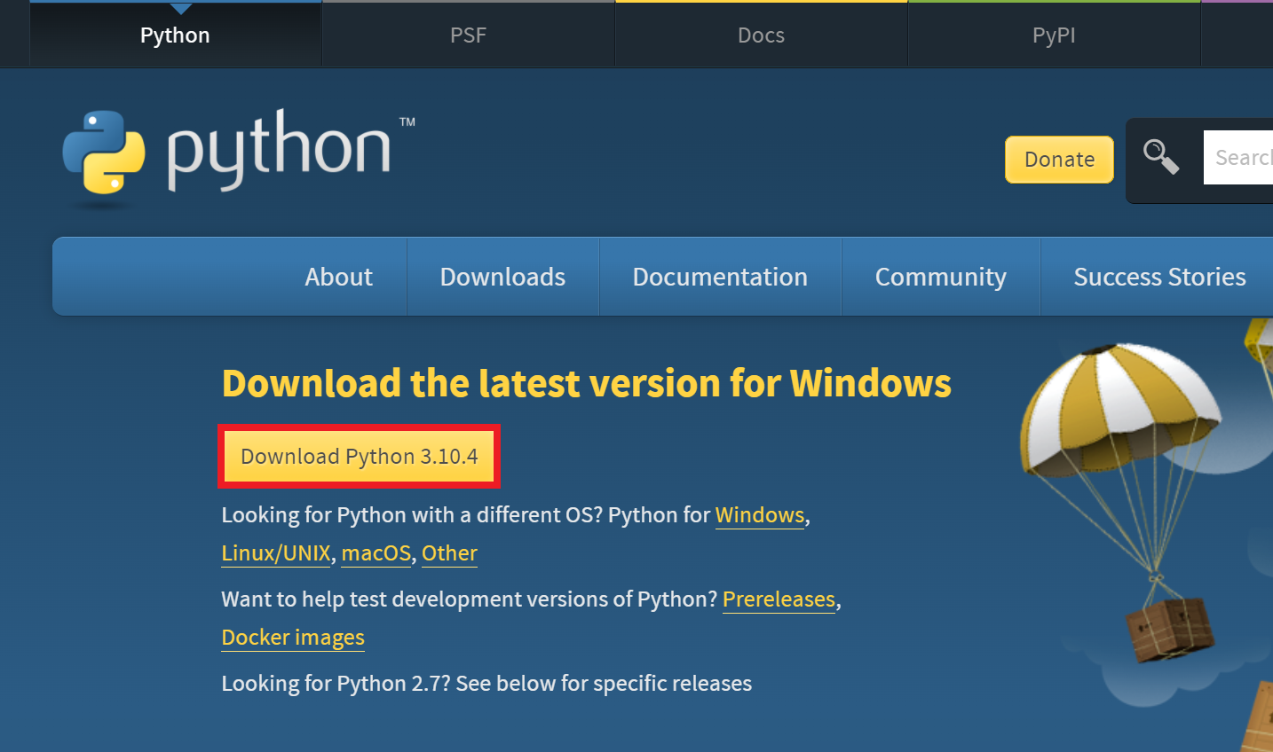 파이썬 공식 다운로드 홈페이지로 이동한 뒤에 [Download Python] 버튼을 눌러서 파이썬 설치를 진행한다. 파이썬 설치 프로그램 다운로드가 완료되면, 단순히 실행하여 설치하면 된다. 설치가 완료된 이후에는 [Add Python to PATH] 버튼에 체크하여 Python을 PATH에 추가해주면 된다. 그러면 명령 프롬프트(CMD)와 같은 환경에서 파이썬을 손쉽게 실행할 수 있게 된다.