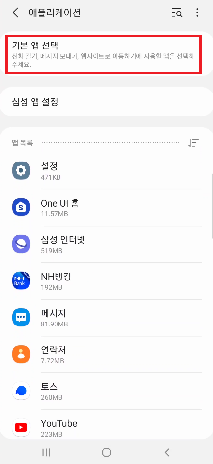 기본 브라우저를 변경하기 위해서는 [설정] - [애플리케이션] - [기본 앱 선택] - [브라우저 앱]에 들어가면 된다.