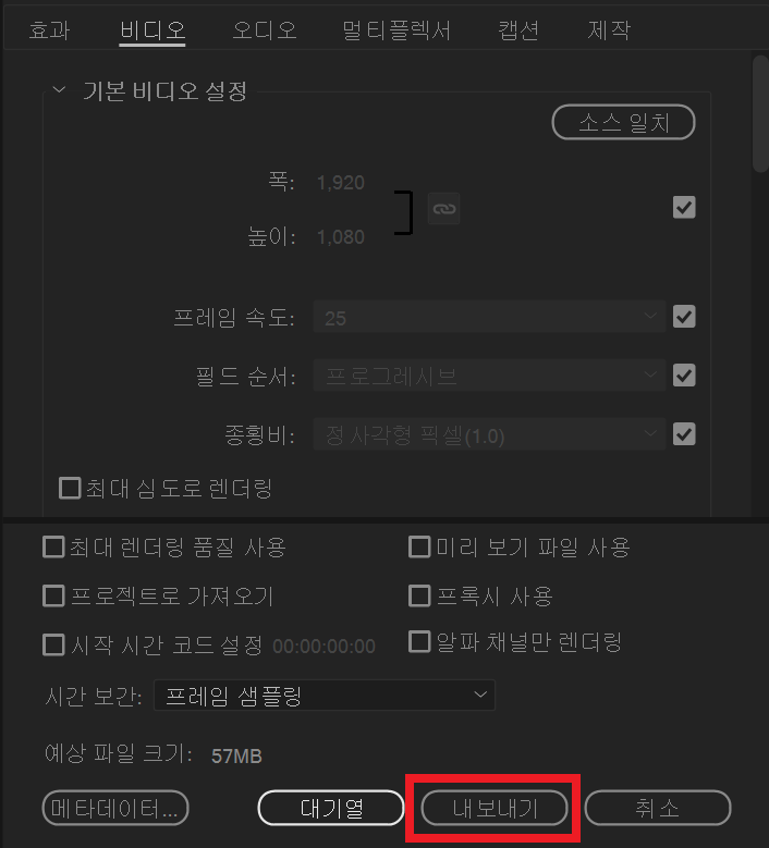 이후에 적절한 동영상 설정을 진행한 뒤에 [내보내기] 버튼을 누르면 됩니다.