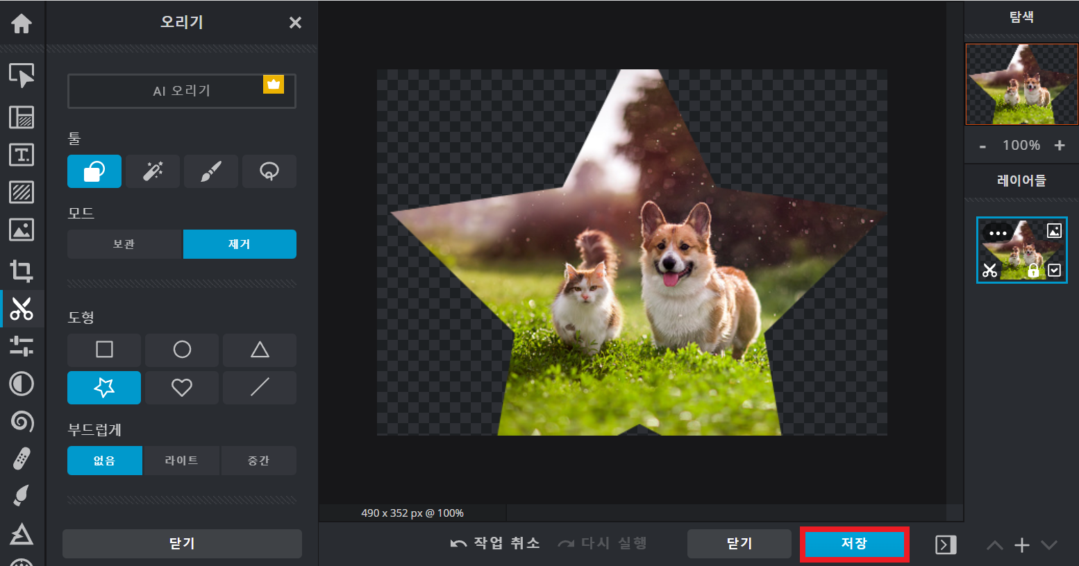 편집을 완료한 뒤에는 [저장] 버튼을 눌러 이미지를 저장할 수 있습니다.