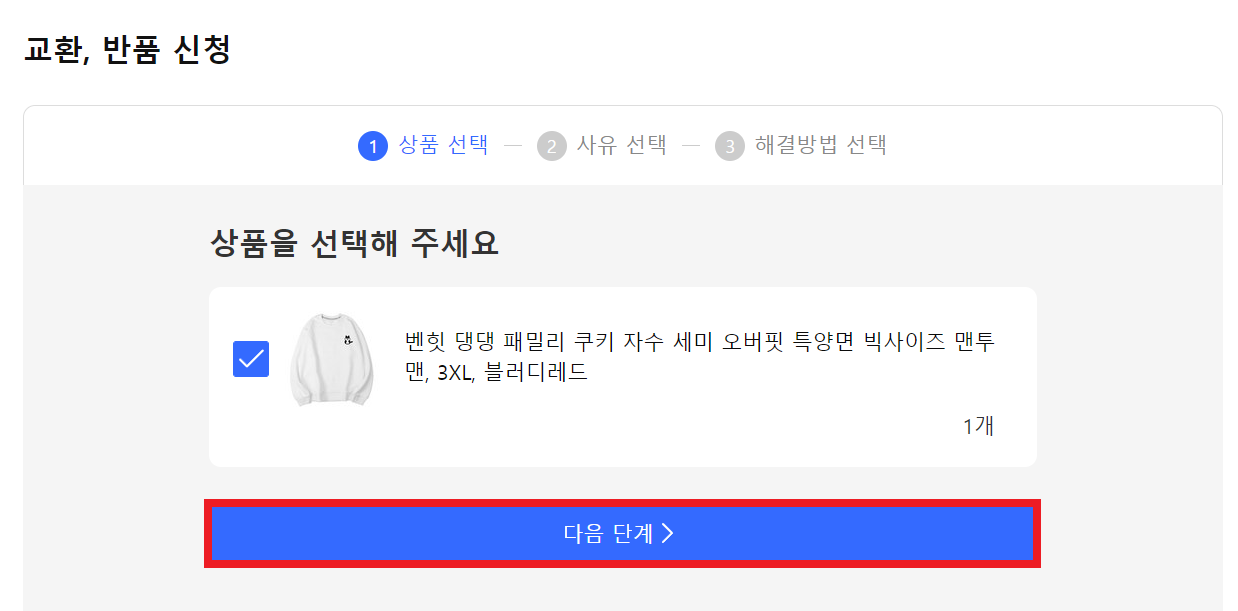 이후에 어떤 상품을 교환 혹은 반품 신청할 건지 결정하면 된다.