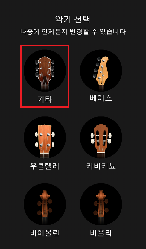 악기로 [기타]를 선택한 뒤에는 기타 줄 6개를 차례대로 하나씩 튕기면서 조율하면 된다. 하나씩 자신이 원하는 줄을 튕기면 자동으로 몇 번 째 줄인지 알아내서 현재 음이 낮은지 높은지 알려준다.