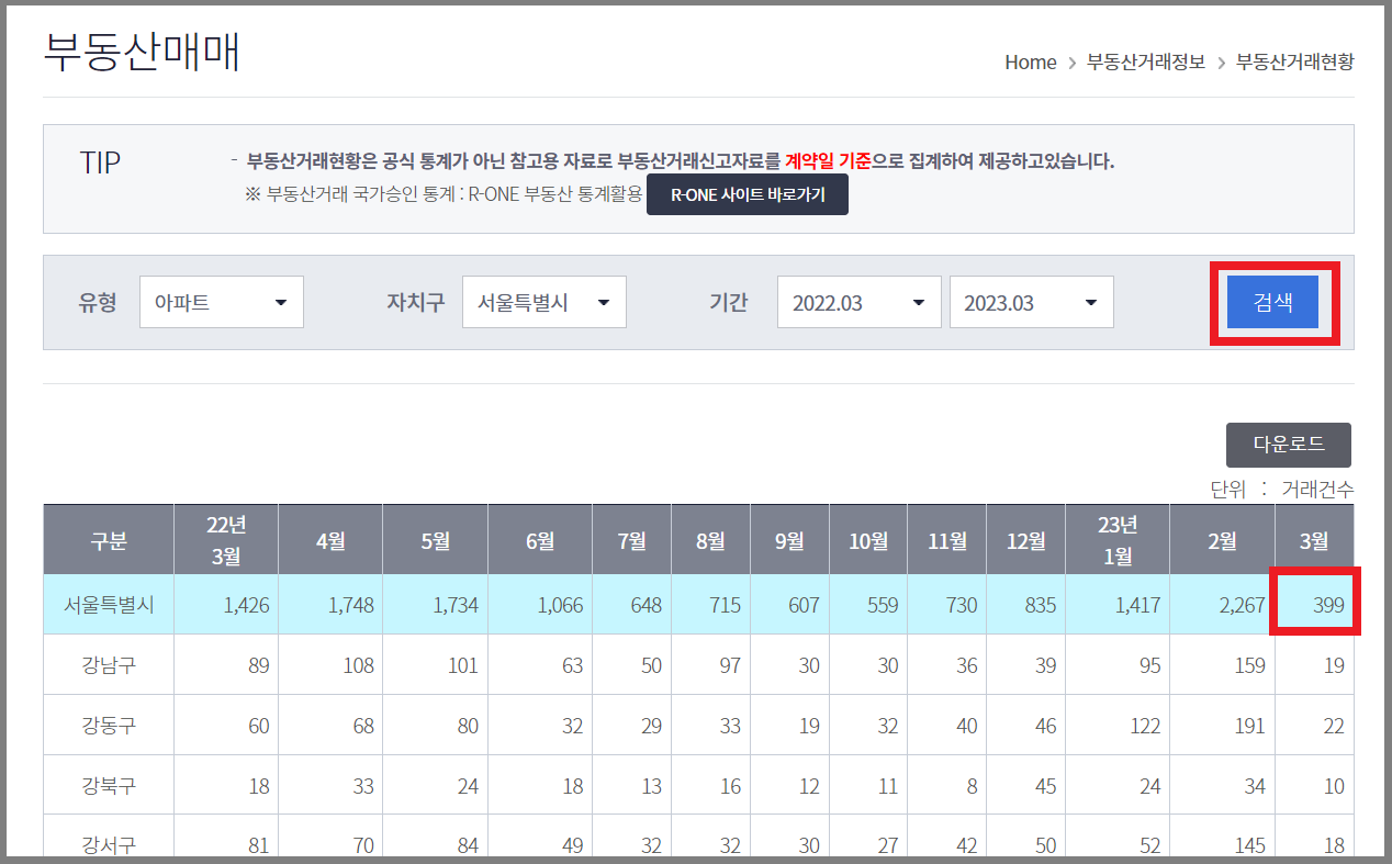 ▶ 서울 부동산 정보 광장 - 부동산 거래 현황: https://land.seoul.go.kr:444/land/rtms/rtmsStatistics.do